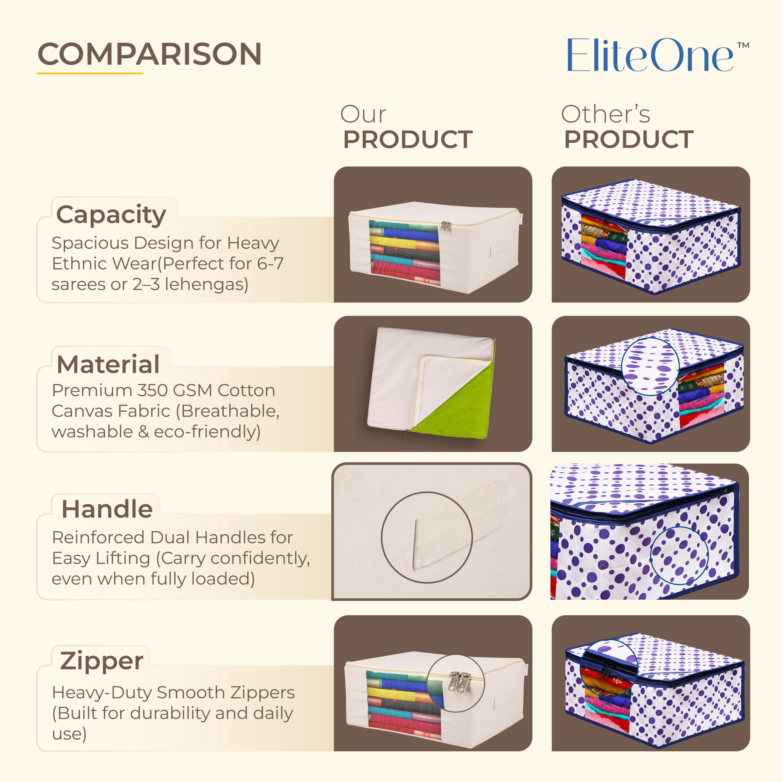 - PREMIUM QUALITY 350 GSM COTTON CANVAS FABRIC : Made from thick, breathable, eco-friendly cotton canvas. This cotton saree bag storage protects clothes from dust, moisture, and insects. Built to last with strong stitching.